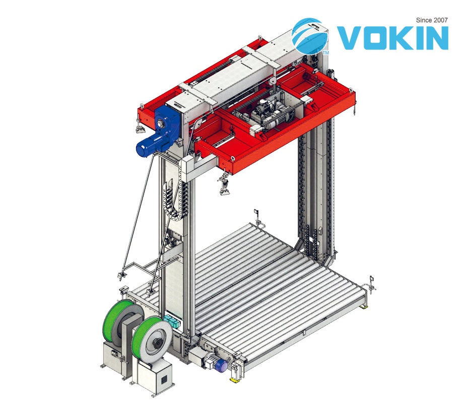 PS系列適用瓦楞行業,平板紙,紙箱和各種碼垛型產品。其配置特殊動力加壓壓板通過多股鏈條傳動下壓。下壓壓力可以通過拉力傳感器感應和設置(最大到5噸),大尺寸壓板確保不同類型和尺寸的產品受到足夠的下壓力后,再打帶捆包,確保最佳的捆扎效果和緊度。雙機頭機型配置2個機頭和標準穿箭機構外,還可以配置特殊的穿箭帶槽和底部固定帶槽,能應用客戶的帶托盤或無托盤的產品。