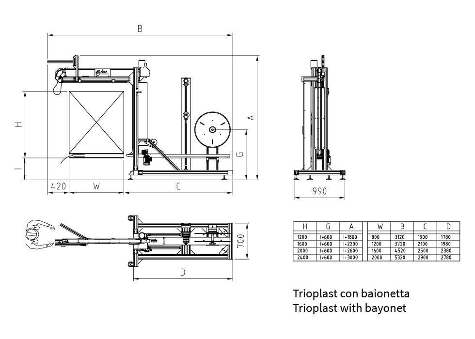 高度(毫米) 800 – 1200 – 1600 – 2000 – 2400
