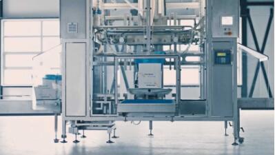 箱子朝密封單元抬起。在這里,兩個真空夾具從箱子的短邊撿起袋子。