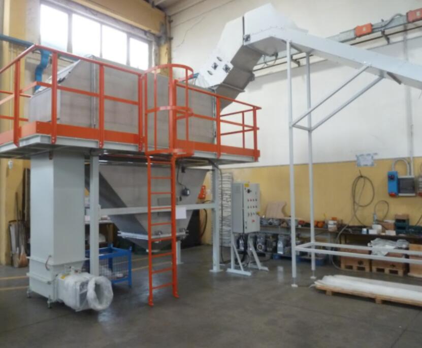 通過(guò)由袋/產(chǎn)品因子和旋轉(zhuǎn)滾筒配置的切割部分,分離過(guò)程中,產(chǎn)品在收集料斗中輸送,然后氣動(dòng)或機(jī)械輸送。用螺旋進(jìn)料器或液壓機(jī)壓實(shí)空袋。