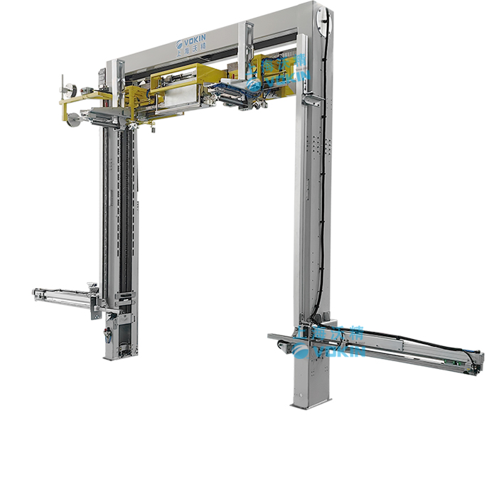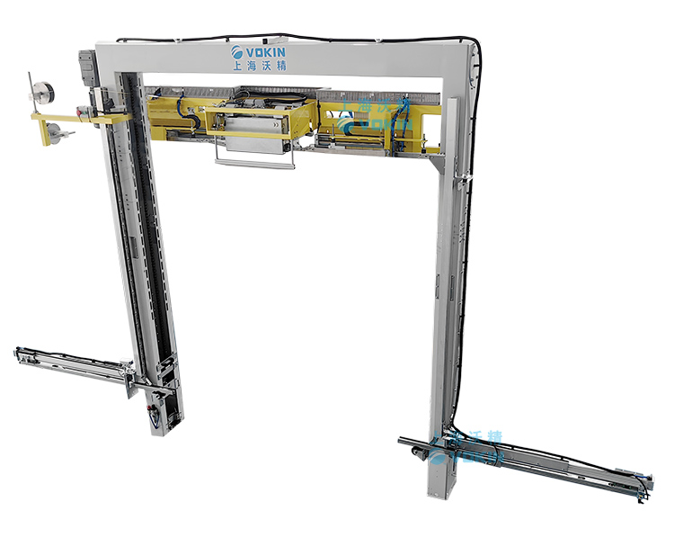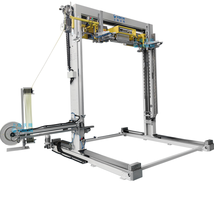 移動(dòng)式打帶機(jī)可以自動(dòng)尋找打帶位置并且配合打帶機(jī)底部的旋轉(zhuǎn)臺輸送機(jī),可以完成井字型打帶。