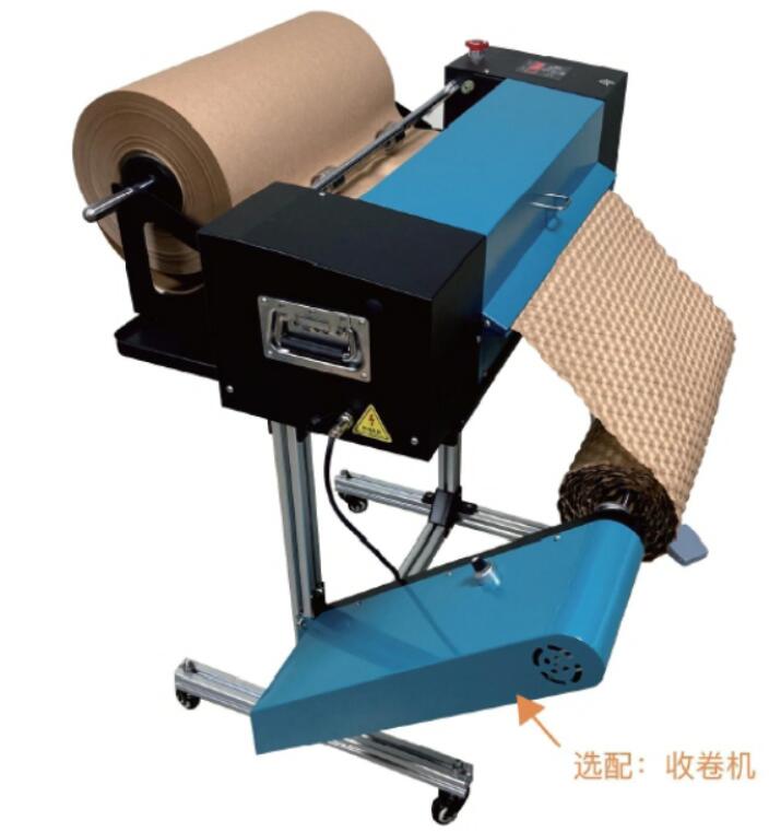 此款機器可制作寬幅500mm的壓泡紙,機器可自由調速,配置腳踏開關,可自由控制出紙長度,適合小型倉庫,生產線等場所