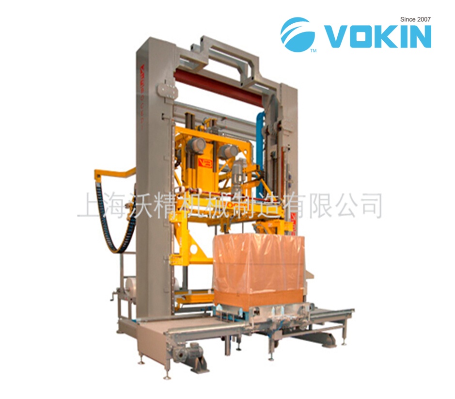 新的大尺寸的塑料袋插入箱體的包裝機,使得定制的聚乙烯膜卷,并自動插入袋成各種規格的托盤容器(托盤箱,垃圾箱,木箱,鐵絲網籠,等)